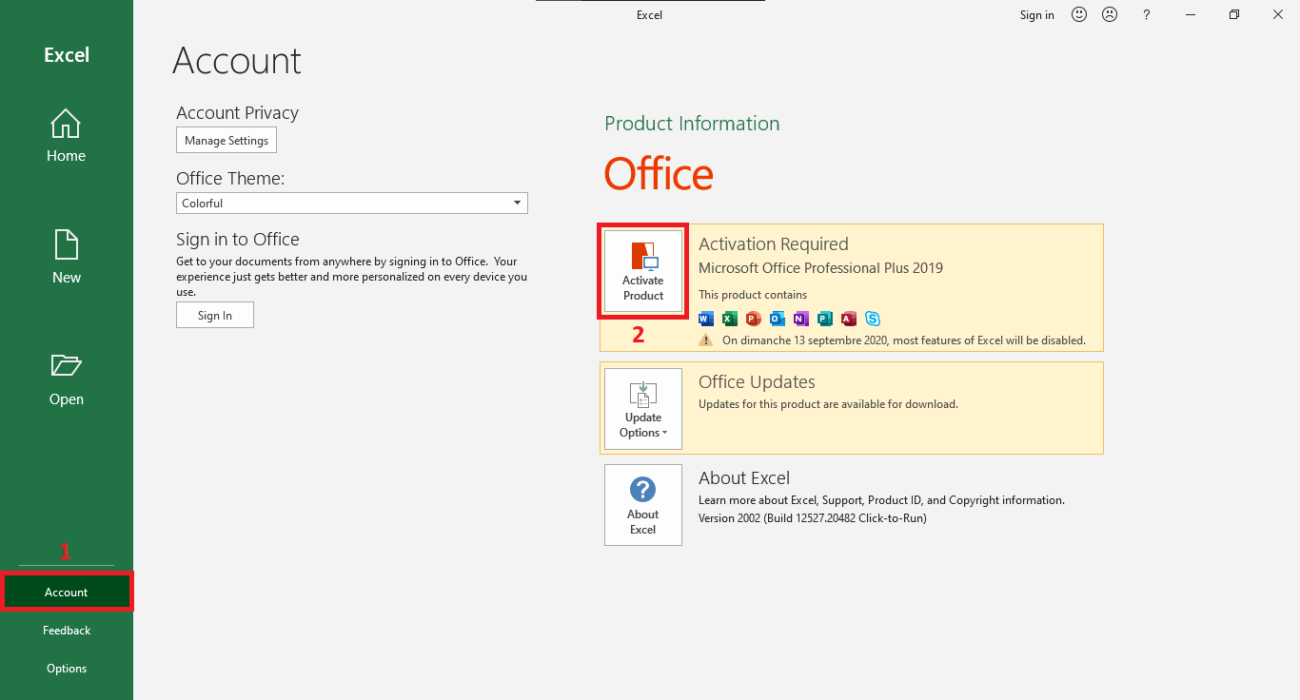 Open any Office application (like Word or Excel).
