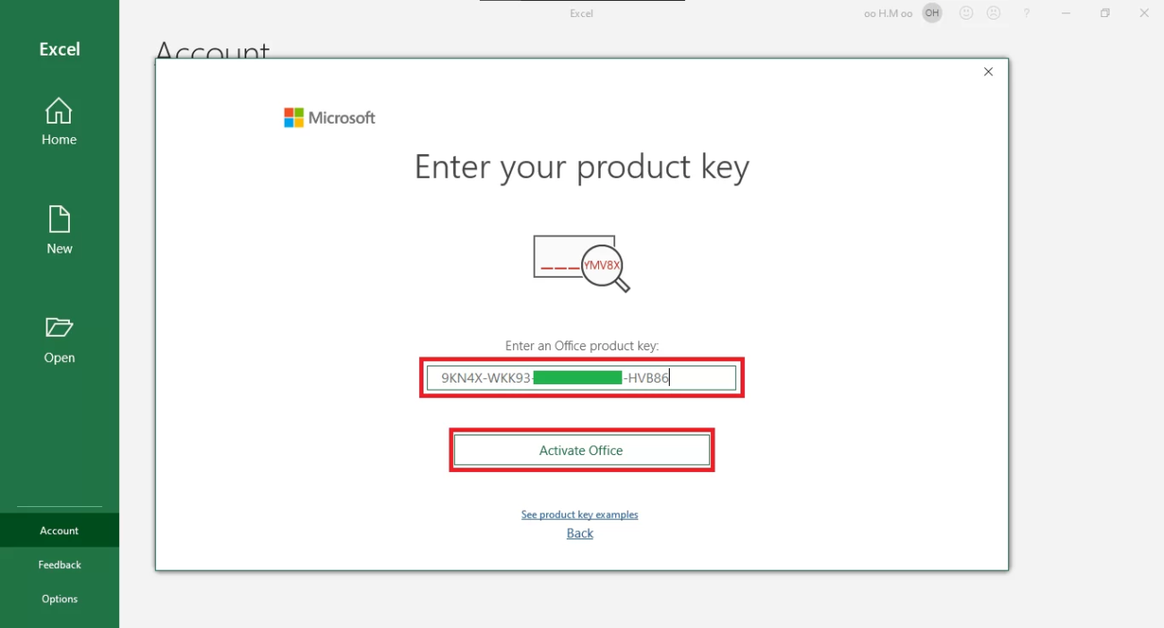 Enter your valid product key purchased. Then, click in “Activate Office”.