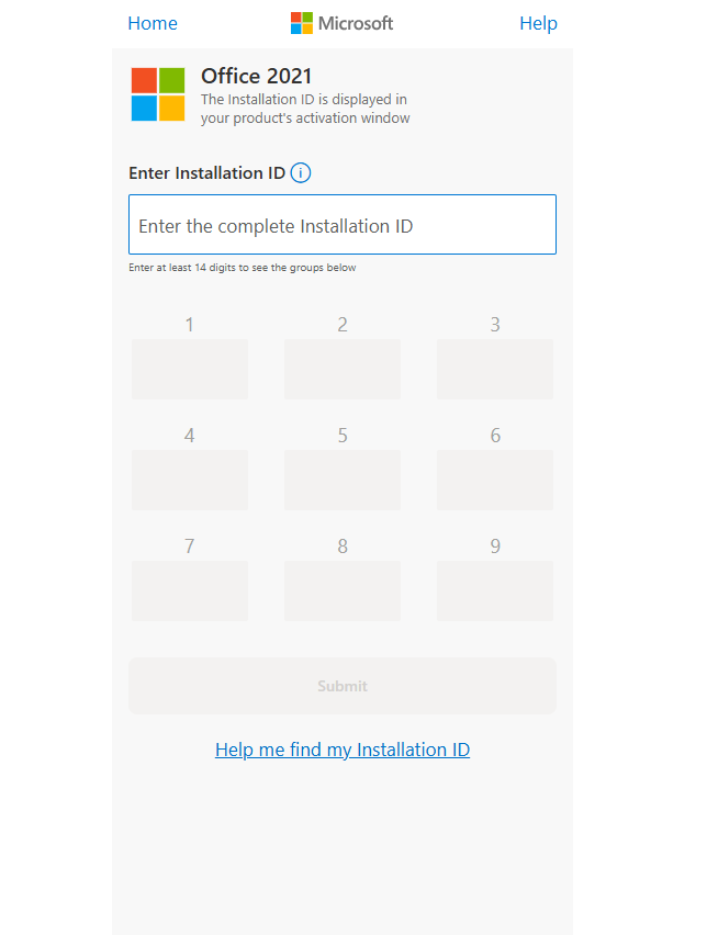 You will see the “Enter Installation ID” page.